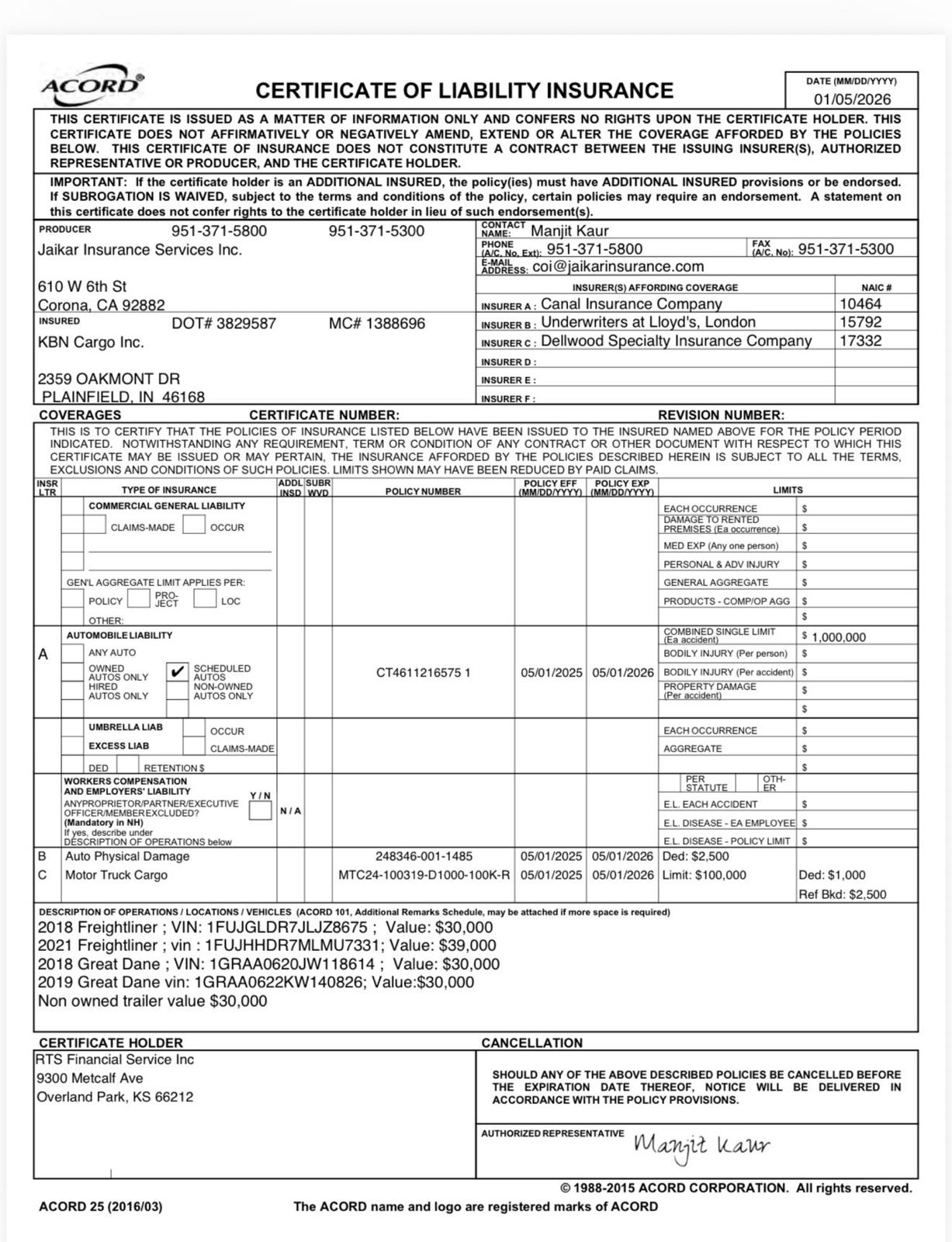1/23/2025 2:19 PM 101183 Vinod Kumar - 8.24.1985 - Dia Transport Inc - Y7795197 (CA).pdf