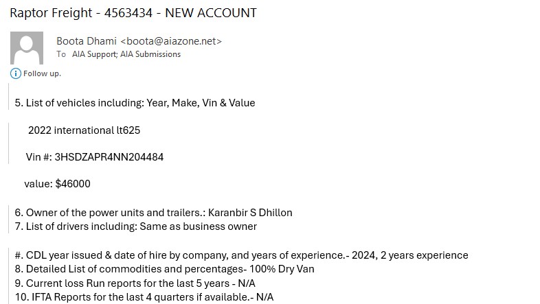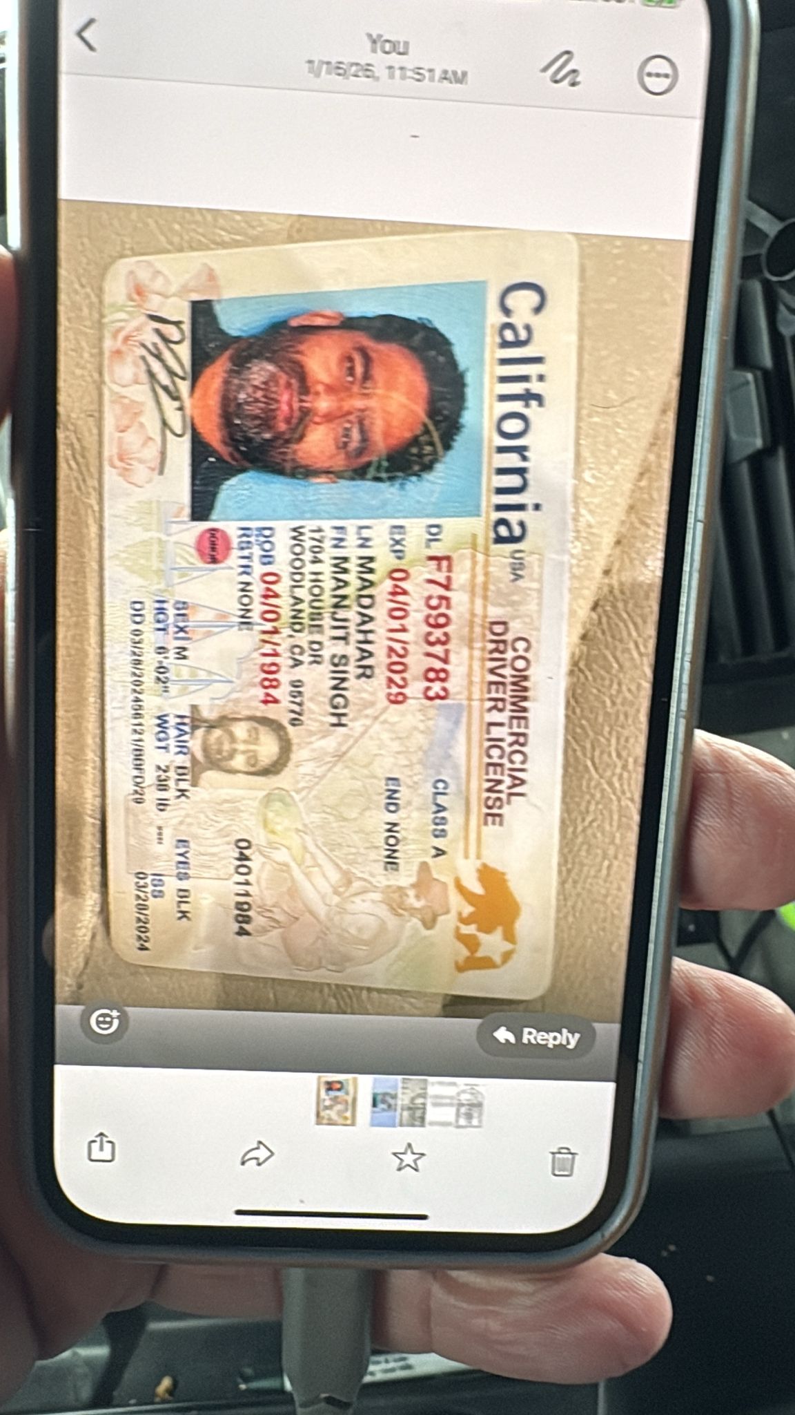 1/7/2025 3:02 PM 540672 Western Reload Inc - Need Active CDL of Hardeep Singh.msg