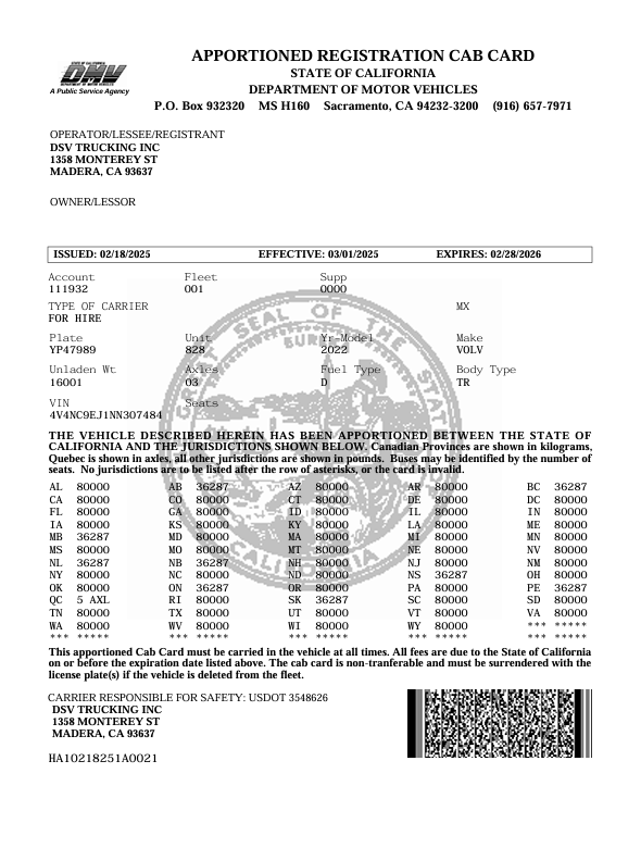 2/14/2026 6:32 AM 100922 Wessley Alan Giusto - 5.25.1992 - Basra Trucking Inc - F1072542 (CA) - Good.pdf