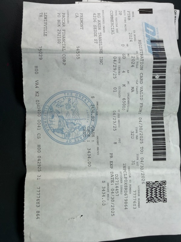 7/1/2025 2:08 AM 558080 (NEW TRUCK)RE_ FASTRACK CARRIER INC DOT _ 4202734.msg