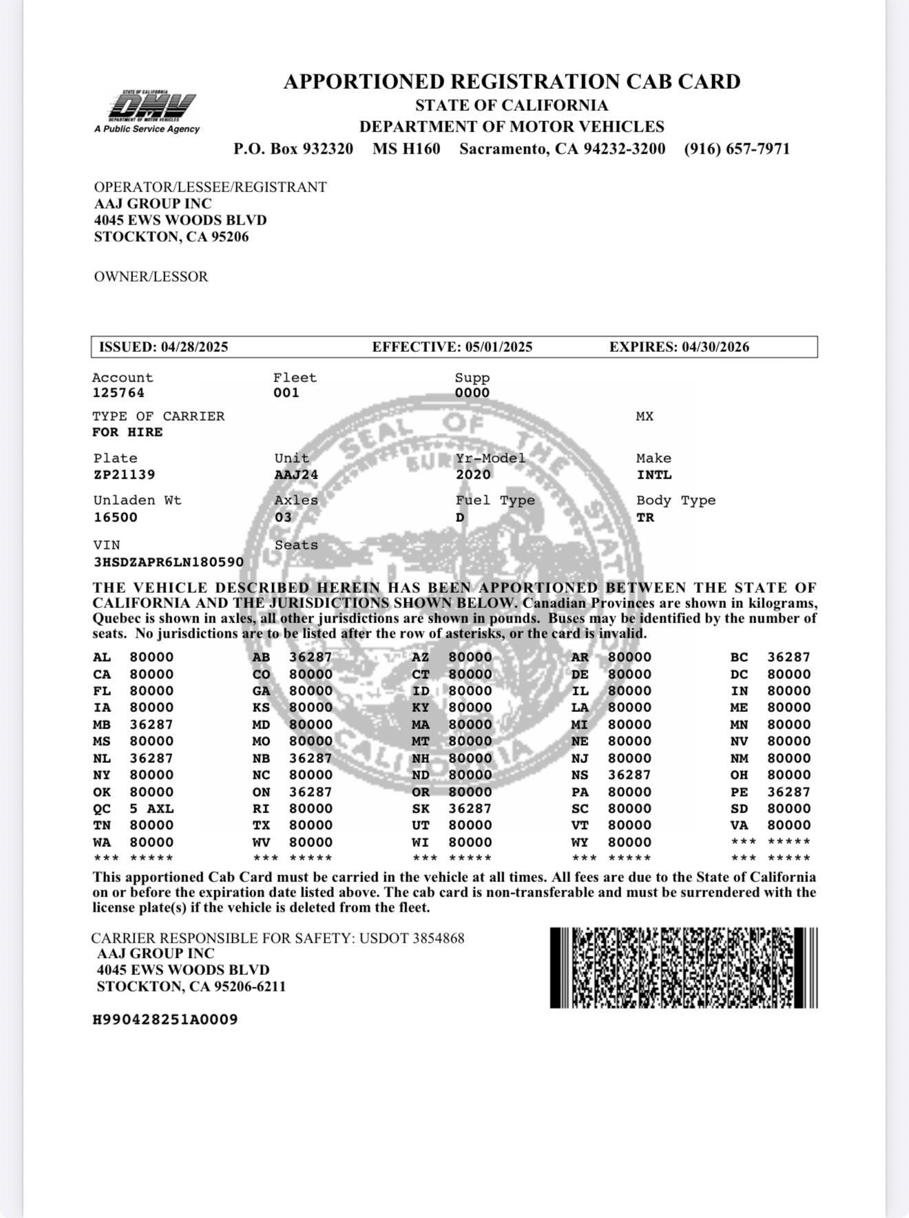 3/7/2025 2:53 PM 90456 Zeferino Jr Aispuro - 8.6.1966 - High Ground Shipping Inc - C2649078 (CA) - Good.pdf