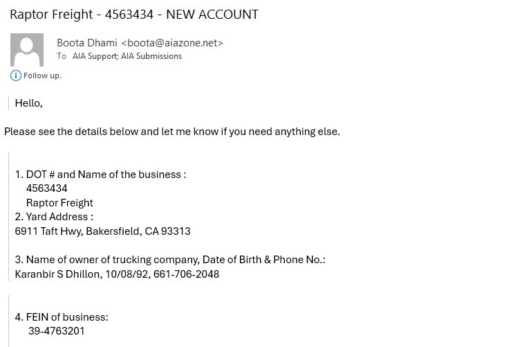 1/7/2025 3:02 PM 540672 Western Reload Inc - Need Active CDL of Hardeep Singh.msg