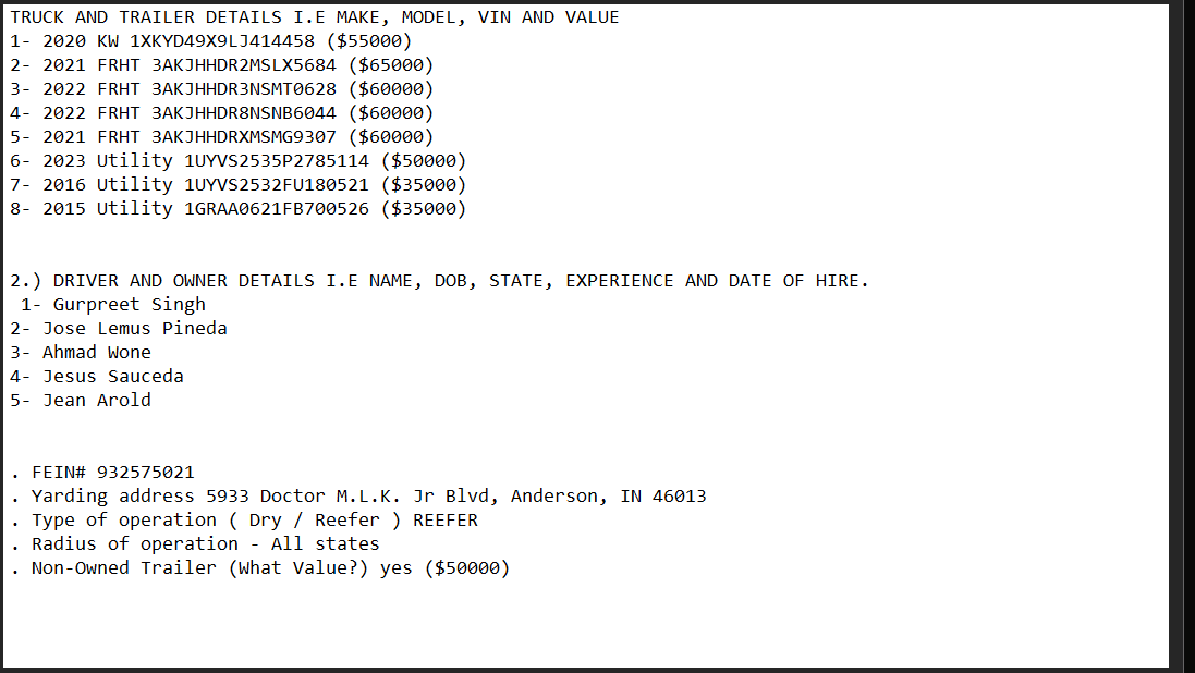 1/8/2025 2:33 PM 62834 z-Knight Direct Commercial Auto Application - MSP Truck Lines Inc.xlsx