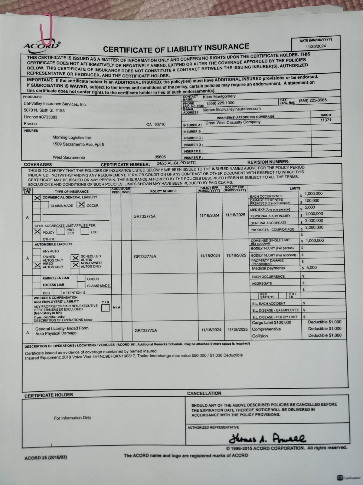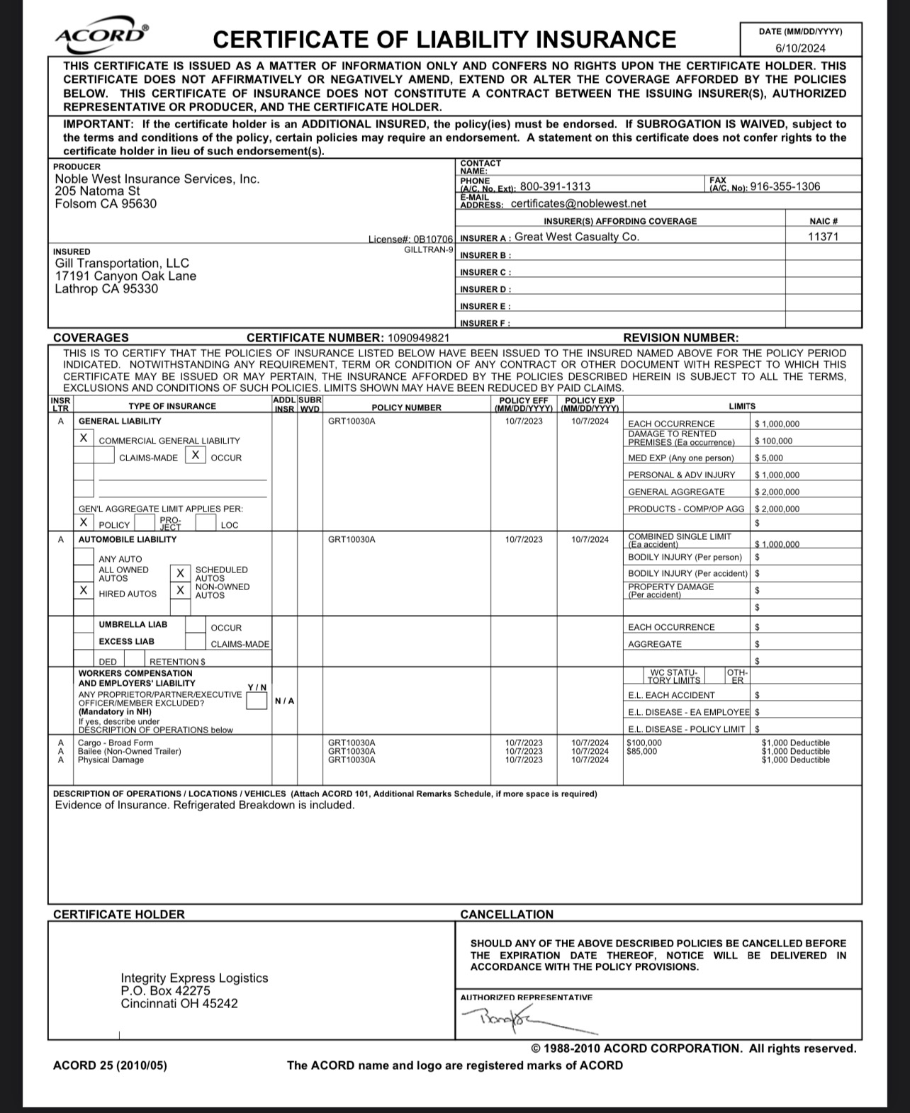 7/29/2025 10:41 PM 36864 (GL, Cargo Limit) Re_ ACE FREIGHTWAY INC - 3694163.msg