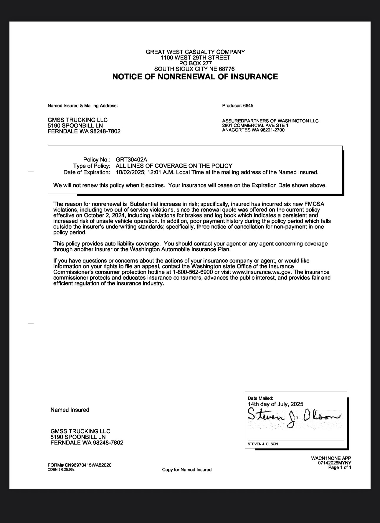 6/22/2025 4:36 AM 95884 Warner Anthony Graves - 10.12.1963 - BK Freightway Inc - D2125518 (CA) -.pdf