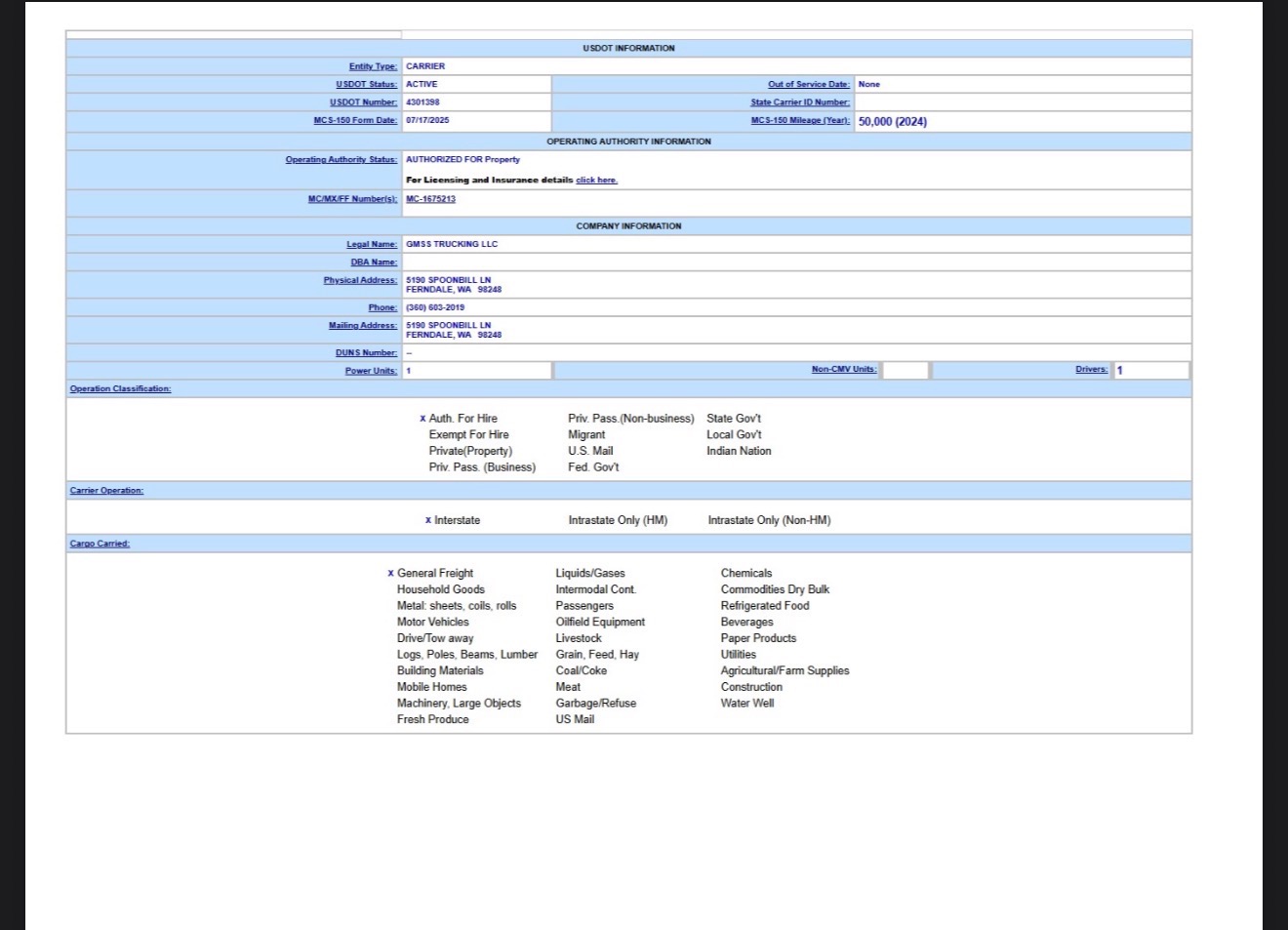 7/1/2025 5:29 AM 2348032 (MCS 150) NAGRA CARGO INC DOT 4430903.msg