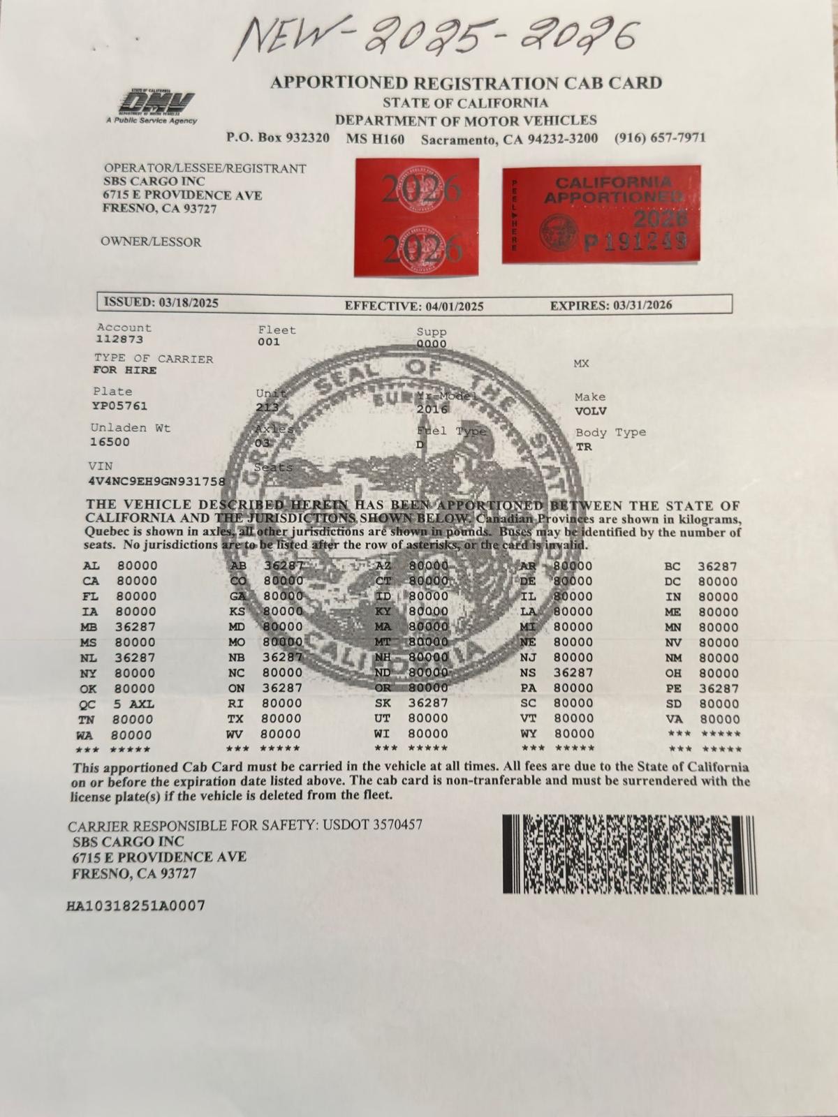 9/13/2025 5:35 AM 338944 WARIS TRANSPORTATION INC- 3521243.msg