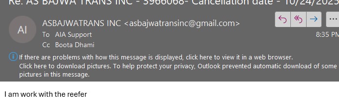7/29/2025 10:41 PM 2494976 ( Owner CDL And CDL)Re_ ACE FREIGHTWAY INC - 3694163.msg